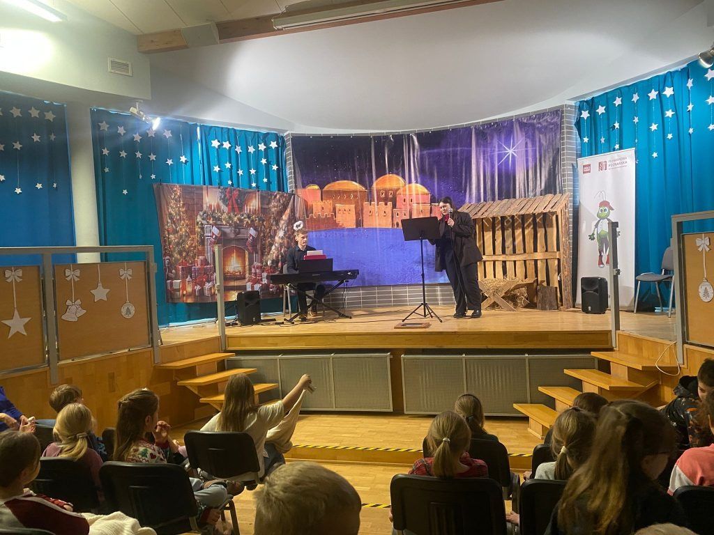Dziś uczniowie zanurzyli się w świecie muzyki i świątecznych zwyczajów podczas wyjątkowych warsztatów prowadzonych przez edukatorów z Filharmonii Poznańskiej.