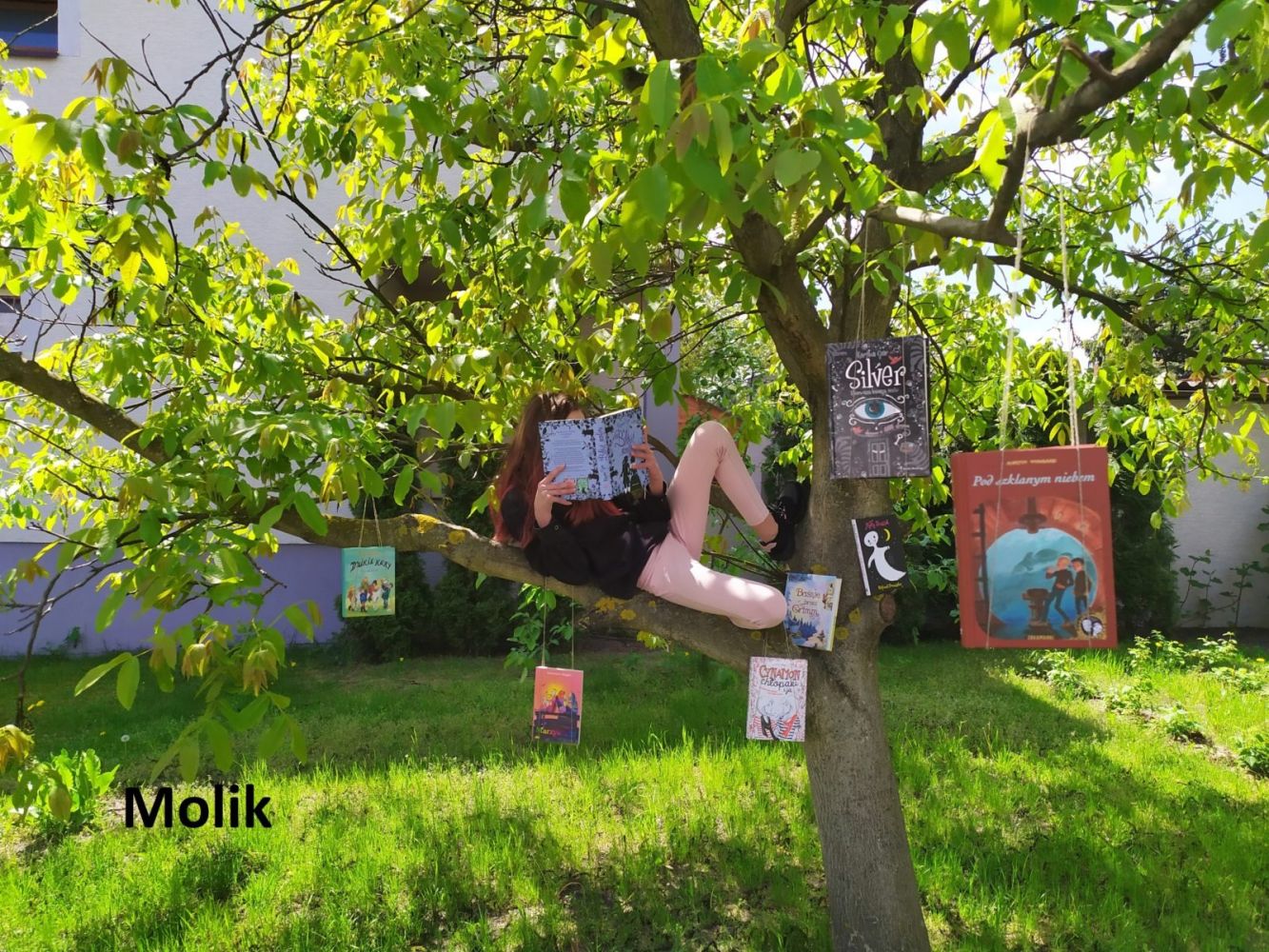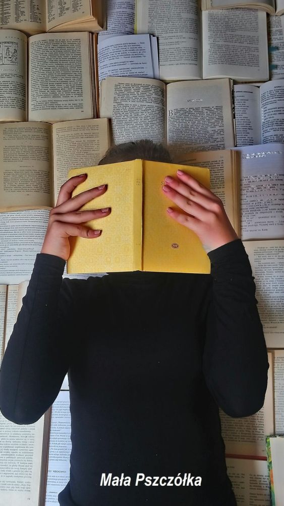 W ten wyjątkowy maj, w dobie pandemii COVID – 19 na całym świecie i zdalnego nauczania w polskich szkołach, biblioteka szkolna zorganizowała po raz pierwszy konkurs on-line. Przedmiotem konkursu były zdjęcie promujące książki i czytelnictwo jako atrakcyjny sposób spędzania wolnego czasu. Każdy uczeń z klasy 5-8 mógł na podany wcześniej link przysłać zdjęcie, na którym autor ukrywając swoją twarz promowałby ciekawą książkę. Z nadesłanych prac utworzona została wirtualna galeria. Następnie uczniowie i nauczyciele mogli wypełnić ankietę, w której ocenili poszczególne prace w skali od jednej do pięciu gwiazdek. Pierwsze trzy osoby, z największą ilością gwiazdek, zostały zostały laureatami konkursu.